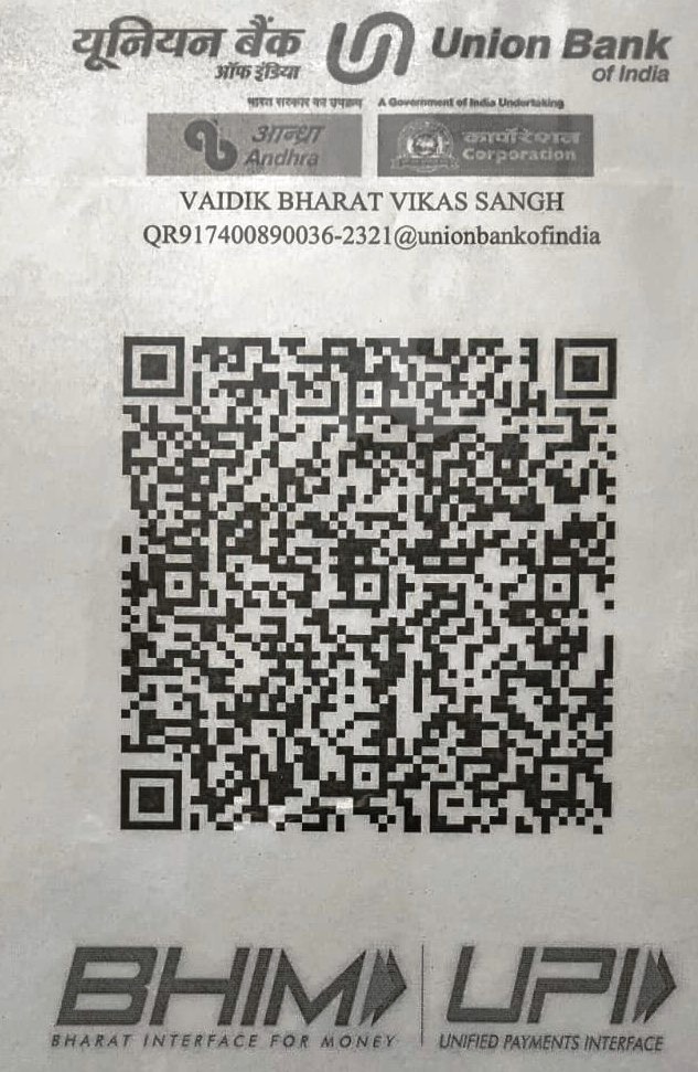 वैदिक भारत विकास संघ में सहयोग राशि को दान के लिए आप UPI अथवा नेट बैंकिंग भी कर सकते हैं। !!!!!!!!
